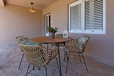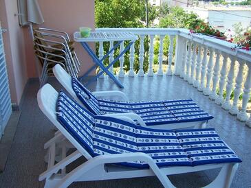 Appartamento può accogliere 4 ospiti. I letti sono disposti nelle camere da letto che sono 2, su 63m2. Gli ospiti hanno a disposizione il proprio terrazzo per godere nelle calde serate estive. Si può preparare il cibo utilizzando il barbecue comune.