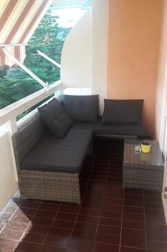 Appartamento può accogliere 5 ospiti. I letti sono disposti nelle camere da letto che sono 2, e nella camera di soggiorno, su 55m2. Gli ospiti hanno a disposizione il proprio balcone per godere delle calde serate estive. Dall'appartamento si gode di una vista sul mare. Nell'unità di alloggio si possono portare gli animali domestici senza alcun pagamento supplementare.