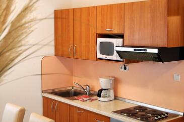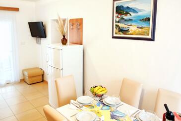 Casa può accogliere 6 ospiti. I letti sono disposti nelle camere da letto che sono 2, e nella camera di soggiorno, su 48m2. Gli ospiti hanno a disposizione il proprio terrazzo per godere nelle calde serate estive. Dalla casa si gode di una vista sul mare. Si può preparare il cibo utilizzando il barbecue comune. Durante il soggiorno gli ospiti possono utilizzare la piscina comune. Arrivati nell'unità d'alloggio i clienti devono pagare un deposito (il prezzo è indicato sul sito).