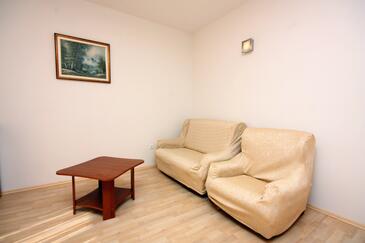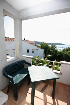 Appartamento può accogliere 6 ospiti. I letti sono disposti nelle camere da letto che sono 2, e nella camera di soggiorno, su 74m2. Gli ospiti hanno a disposizione il proprio balcone per godere delle calde serate estive. Dall'appartamento si gode di una vista sul mare. Si può preparare il cibo utilizzando il barbecue comune.