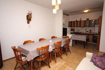 Appartamento può accogliere 8 ospiti. I letti sono disposti nelle camere da letto che sono 4, su 109m2. Gli ospiti hanno a disposizione il proprio terrazzo per godere nelle calde serate estive. Dall'appartamento si gode di una vista sul mare. Si può preparare il cibo utilizzando il barbecue comune.