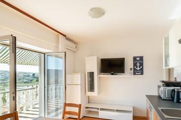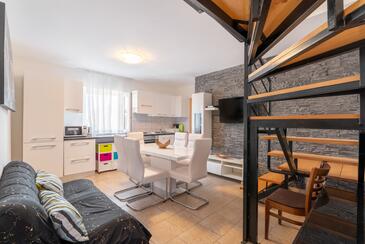 Appartamento può accogliere 5 ospiti. I letti sono disposti nelle camere da letto che sono 2, su 60m2. Gli ospiti hanno a disposizione il proprio terrazzo per godere nelle calde serate estive. Per il piacere totale e il relax c'è il barbecue privato solo per gli ospiti di quest'alloggio. Nell'unità di alloggio si possono portare gli animali domestici con un pagamento supplementare.
