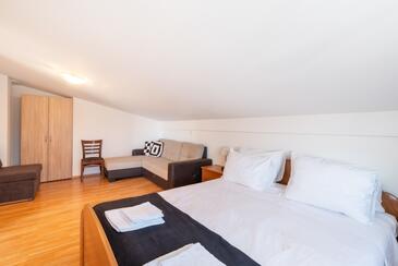 Appartamento può accogliere 5 ospiti. I letti sono disposti nelle camere da letto che sono 2, su 60m2. Gli ospiti hanno a disposizione il proprio terrazzo per godere nelle calde serate estive. Per il piacere totale e il relax c'è il barbecue privato solo per gli ospiti di quest'alloggio. Nell'unità di alloggio si possono portare gli animali domestici con un pagamento supplementare.