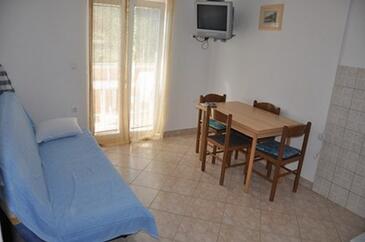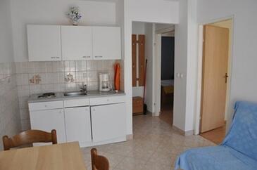 Appartamento può accogliere 5 ospiti. I letti sono disposti nelle camere da letto che sono 2, e nella sala da pranzo, su 47m2. Gli ospiti hanno a disposizione il proprio balcone per godere delle calde serate estive. Si può preparare il cibo utilizzando il barbecue comune.