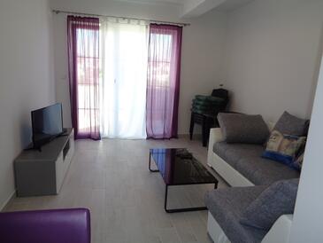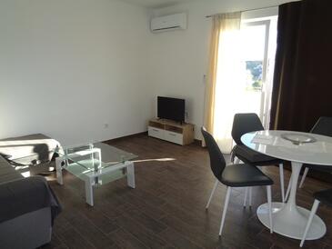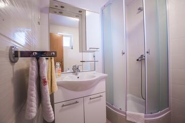 Appartamento può accogliere 5 ospiti. I letti sono disposti nelle camere da letto che sono 2, su 48m2. Gli ospiti hanno a disposizione il proprio terrazzo per godere nelle calde serate estive. Dall'appartamento si gode di una vista sul mare. Si può preparare il cibo utilizzando il barbecue comune.
