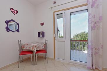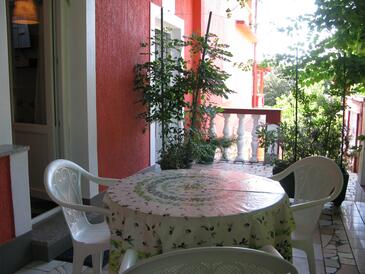Appartamento può accogliere 4 ospiti. I letti sono disposti nelle camere da letto che sono 2, su 51m2. Gli ospiti hanno a disposizione il proprio terrazzo per godere nelle calde serate estive. Dall'appartamento si gode di una vista sul mare. Si può preparare il cibo utilizzando il barbecue comune.