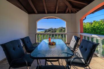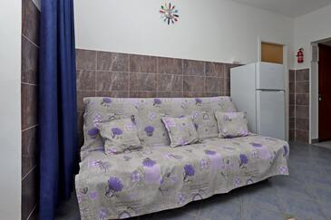 Appartamento può accogliere 4 ospiti. I letti sono disposti nelle camere da letto che sono 2, su 39m2. Gli ospiti hanno a disposizione il proprio terrazzo per godere nelle calde serate estive. Dall'appartamento si gode di una vista sul mare. Si può preparare il cibo utilizzando il barbecue comune.