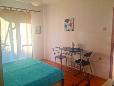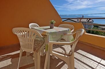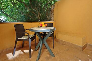 Appartamento può accogliere 4 ospiti. I letti sono disposti nelle camere da letto che sono 2, su 38m2. Gli ospiti hanno a disposizione il proprio terrazzo per godere nelle calde serate estive. Dall'appartamento si gode di una vista sul mare. Si può preparare il cibo utilizzando il barbecue comune.
