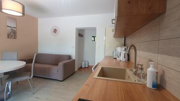 Appartamento può accogliere 3 ospiti. I letti sono disposti nelle camere da letto che sono 1, e nella camera di soggiorno, su 32m2. Gli ospiti hanno a disposizione il proprio terrazzo per godere nelle calde serate estive. Si può preparare il cibo utilizzando il barbecue comune. Nell'unità di alloggio si possono portare gli animali domestici con un pagamento supplementare.