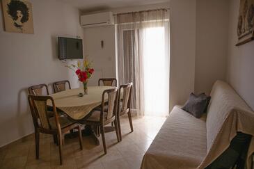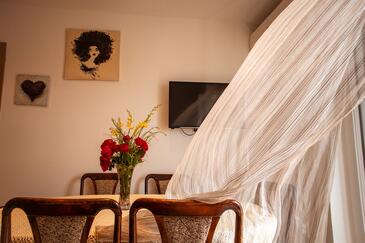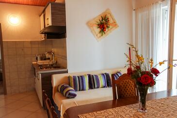 Appartamento può accogliere 5 ospiti. I letti sono disposti nelle camere da letto che sono 2, su 47m2. Gli ospiti hanno a disposizione il proprio balcone per godere delle calde serate estive. Dall'appartamento si gode di una vista sul mare. Si può preparare il cibo utilizzando il barbecue comune. Durante il soggiorno gli ospiti possono utilizzare la piscina comune.