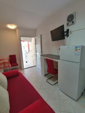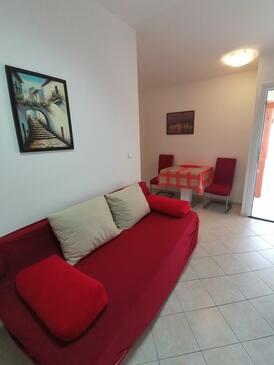 Appartamento può accogliere 4 ospiti. I letti sono disposti nelle camere da letto che sono 2, su 48m2. Gli ospiti hanno a disposizione il proprio terrazzo per godere nelle calde serate estive. Si può preparare il cibo utilizzando il barbecue comune.
