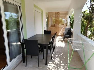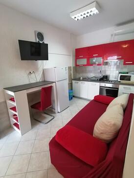 Appartamento può accogliere 4 ospiti. I letti sono disposti nelle camere da letto che sono 2, su 48m2. Gli ospiti hanno a disposizione il proprio terrazzo per godere nelle calde serate estive. Si può preparare il cibo utilizzando il barbecue comune.