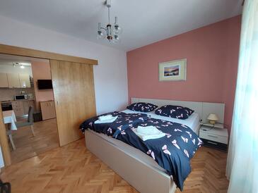 Appartamento può accogliere 4 ospiti. I letti sono disposti nelle camere da letto che sono 2, su 51m2. Gli ospiti hanno a disposizione il proprio terrazzo per godere nelle calde serate estive. Si può preparare il cibo utilizzando il barbecue comune.