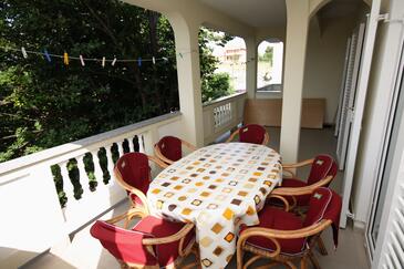 Appartamento può accogliere 4 ospiti. I letti sono disposti nelle camere da letto che sono 2, su 51m2. Gli ospiti hanno a disposizione il proprio terrazzo per godere nelle calde serate estive. Si può preparare il cibo utilizzando il barbecue comune.