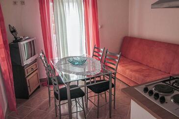 Appartamento può accogliere 3 ospiti. I letti sono disposti nelle camere da letto che sono 1, e nella camera di soggiorno, su 30m2. Gli ospiti hanno a disposizione il proprio terrazzo per godere nelle calde serate estive. Durante il soggiorno gli ospiti possono utilizzare la piscina comune. Altri clienti o proprietari passano per terrazzo dell'unità d'alloggio prenotata. L'unità d'alloggio ha delle stanze separate dal resto dell'unità.