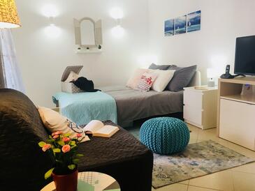 Monolocale può accogliere 3 ospiti. I letti sono disposti nelle nella camera di soggiorno, su 25m2. Gli ospiti hanno a disposizione il proprio balcone per godere delle calde serate estive.