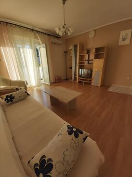 Appartamento può accogliere 4 ospiti. I letti sono disposti nelle camere da letto che sono 2, su 72m2. Gli ospiti hanno a disposizione il proprio terrazzo per godere nelle calde serate estive. Si può preparare il cibo utilizzando il barbecue comune. Nell'unità di alloggio si possono portare gli animali domestici con un pagamento supplementare. Altri clienti o proprietari passano per terrazzo dell'unità d'alloggio prenotata.