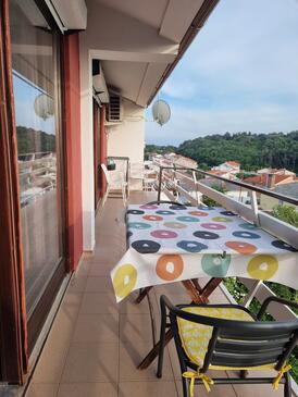 Appartamento può accogliere 4 ospiti. I letti sono disposti nelle camere da letto che sono 1, e nella camera di soggiorno, su 48m2. Gli ospiti hanno a disposizione il proprio balcone per godere delle calde serate estive. Dall'appartamento si gode di una vista sul mare. Si può preparare il cibo utilizzando il barbecue comune.