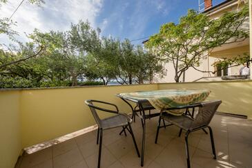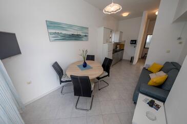 Appartamento può accogliere 5 ospiti. I letti sono disposti nelle camere da letto che sono 2, su 50m2. Gli ospiti hanno a disposizione il proprio balcone per godere delle calde serate estive. Dall'appartamento si gode di una vista sul mare. Si può preparare il cibo utilizzando il barbecue comune. Nell'unità di alloggio si possono portare gli animali domestici con un pagamento supplementare.