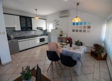 Appartamento può accogliere 7 ospiti. I letti sono disposti nelle camere da letto che sono 3, e nella camera di soggiorno, su 94m2. Gli ospiti hanno a disposizione il proprio terrazzo per godere nelle calde serate estive. Dall'appartamento si gode di una vista sul mare.