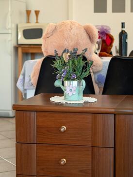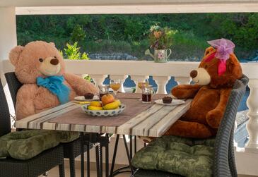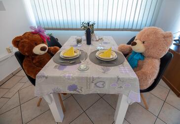 Appartamento può accogliere 7 ospiti. I letti sono disposti nelle camere da letto che sono 3, e nella camera di soggiorno, su 94m2. Gli ospiti hanno a disposizione il proprio terrazzo per godere nelle calde serate estive. Dall'appartamento si gode di una vista sul mare.