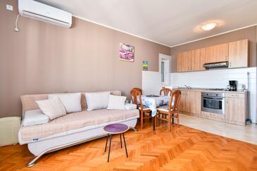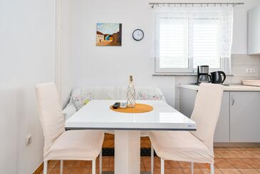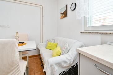 Appartamento può accogliere 4 ospiti. I letti sono disposti nelle camere da letto che sono 2, su 48m2. Gli ospiti hanno a disposizione il proprio terrazzo per godere nelle calde serate estive. Dall'appartamento si gode di una vista sul mare. Si può preparare il cibo utilizzando il barbecue comune. Nell'unità di alloggio si possono portare gli animali domestici con un pagamento supplementare. L'unità d'alloggio ha delle stanze separate dal resto dell'unità.