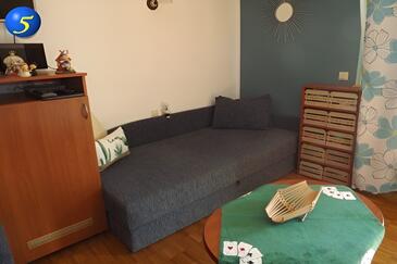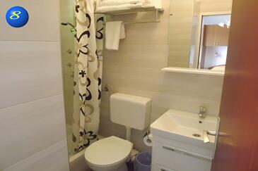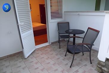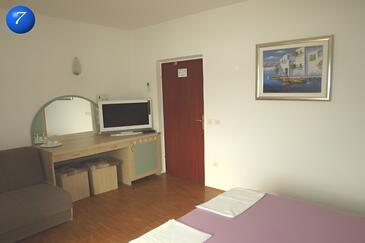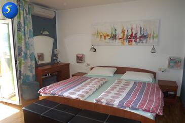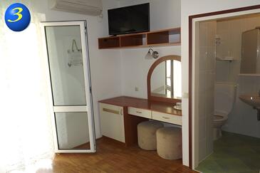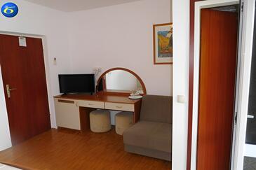 Camera può accogliere 2 ospiti. I letti sono disposti nelle camere da letto che sono 1, su 16m2. Gli ospiti hanno a disposizione il proprio balcone per godere delle calde serate estive. Dalla stanza si gode di una vista sul mare. L'unità di alloggio prenotata è una camera con bagno proprio senza possibilità d'utilizzo della cucina.
