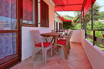 Appartamento può accogliere 4 ospiti. I letti sono disposti nelle camere da letto che sono 2, su 41m2. Gli ospiti hanno a disposizione il proprio terrazzo per godere nelle calde serate estive. Dall'appartamento si gode di una vista sul mare. Si può preparare il cibo utilizzando il barbecue comune. Nell'unità di alloggio si possono portare gli animali domestici con un pagamento supplementare.