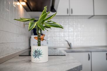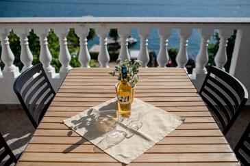 Appartamento può accogliere 5 ospiti. I letti sono disposti nelle camere da letto che sono 2, e nella camera di soggiorno, su 60m2. Gli ospiti hanno a disposizione il proprio terrazzo per godere nelle calde serate estive. Dall'appartamento si gode di una vista sul mare. Si può preparare il cibo utilizzando il barbecue comune. Nell'unità di alloggio si possono portare gli animali domestici con un pagamento supplementare.