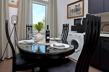 Appartamento può accogliere 4 ospiti. I letti sono disposti nelle camere da letto che sono 2, su 46m2. Gli ospiti hanno a disposizione il proprio terrazzo per godere nelle calde serate estive. Dall'appartamento si gode di una vista sul mare. Si può preparare il cibo utilizzando il barbecue comune.