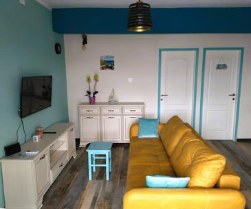 Appartamento può accogliere 3 ospiti. I letti sono disposti nelle camere da letto che sono 1, e nella camera di soggiorno, su 48m2. Gli ospiti hanno a disposizione il proprio terrazzo per godere nelle calde serate estive. Si può preparare il cibo utilizzando il barbecue comune. Altri clienti o proprietari passano per terrazzo dell'unità d'alloggio prenotata.