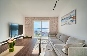 Appartamento può accogliere 6 ospiti. I letti sono disposti nelle camere da letto che sono 3, su 70m2. Gli ospiti hanno a disposizione il proprio balcone per godere delle calde serate estive. Dall'appartamento si gode di una vista sul mare. Si può preparare il cibo utilizzando il barbecue comune.