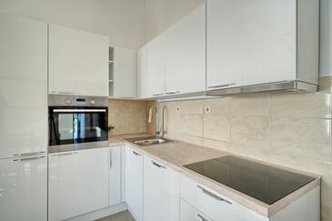Appartamento può accogliere 6 ospiti. I letti sono disposti nelle camere da letto che sono 3, su 70m2. Gli ospiti hanno a disposizione il proprio balcone per godere delle calde serate estive. Dall'appartamento si gode di una vista sul mare. Si può preparare il cibo utilizzando il barbecue comune.