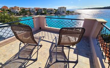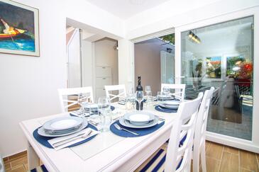 Casa può accogliere 6 ospiti. I letti sono disposti nelle camere da letto che sono 3, su 77m2. Gli ospiti hanno a disposizione il proprio terrazzo per godere nelle calde serate estive. Dalla casa si gode di una vista sul mare. Per il piacere totale e il relax c'è il barbecue privato solo per gli ospiti di quest'alloggio. Nell'unità di alloggio si possono portare gli animali domestici con un pagamento supplementare. Le stanze dell'unità d'alloggio non sono connesse in un insieme. Arrivati nell'unità d'alloggio i clienti devono pagare un deposito (il prezzo è indicato sul sito).