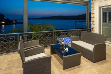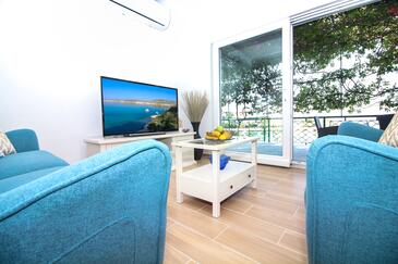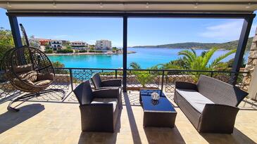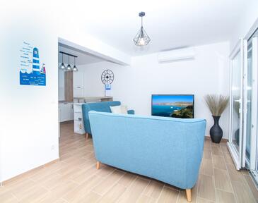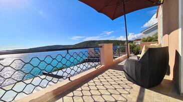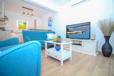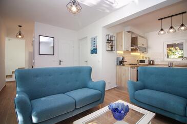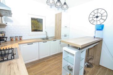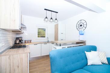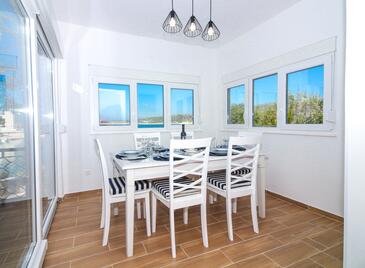 Casa può accogliere 6 ospiti. I letti sono disposti nelle camere da letto che sono 3, su 77m2. Gli ospiti hanno a disposizione il proprio terrazzo per godere nelle calde serate estive. Dalla casa si gode di una vista sul mare. Per il piacere totale e il relax c'è il barbecue privato solo per gli ospiti di quest'alloggio. Nell'unità di alloggio si possono portare gli animali domestici con un pagamento supplementare. Le stanze dell'unità d'alloggio non sono connesse in un insieme. Arrivati nell'unità d'alloggio i clienti devono pagare un deposito (il prezzo è indicato sul sito).