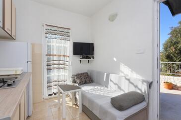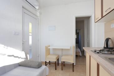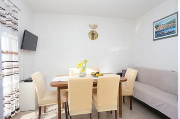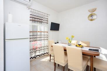 Appartamento può accogliere 6 ospiti. I letti sono disposti nelle camere da letto che sono 3, su 62m2. Gli ospiti hanno a disposizione il proprio terrazzo per godere nelle calde serate estive. Dall'appartamento si gode di una vista sul mare. Per il piacere totale e il relax c'è il barbecue privato solo per gli ospiti di quest'alloggio. Le stanze dell'unità d'alloggio non sono connesse in un insieme.