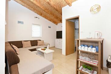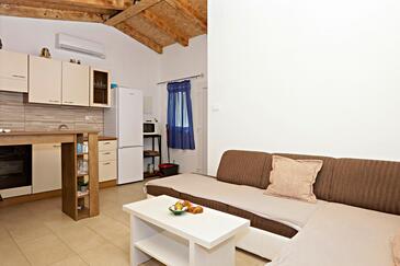 Appartamento può accogliere 6 ospiti. I letti sono disposti nelle camere da letto che sono 3, su 50m2. Gli ospiti hanno a disposizione il proprio terrazzo per godere nelle calde serate estive. Per il piacere totale e il relax c'è il barbecue privato solo per gli ospiti di quest'alloggio.