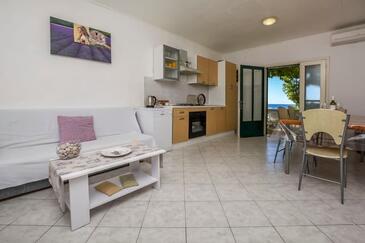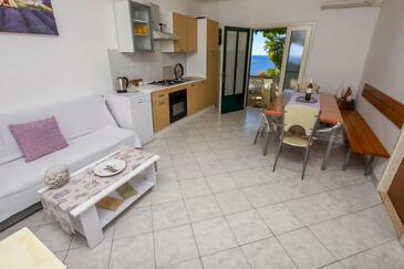 Casa può accogliere 5 ospiti. I letti sono disposti nelle camere da letto che sono 3, su 59m2. Gli ospiti hanno a disposizione il proprio terrazzo per godere nelle calde serate estive. Dalla casa si gode di una vista sul mare. Per il piacere totale e il relax c'è il barbecue privato solo per gli ospiti di quest'alloggio.
