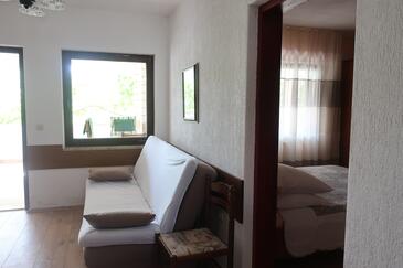 Appartamento può accogliere 6 ospiti. I letti sono disposti nelle camere da letto che sono 2, e nella camera di soggiorno, su 59m2. Gli ospiti hanno a disposizione il proprio terrazzo per godere nelle calde serate estive. Dall'appartamento si gode di una vista sul mare. Si può preparare il cibo utilizzando il barbecue comune. Nell'unità di alloggio si possono portare gli animali domestici con un pagamento supplementare.