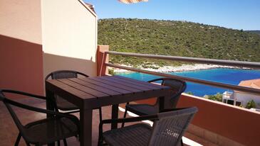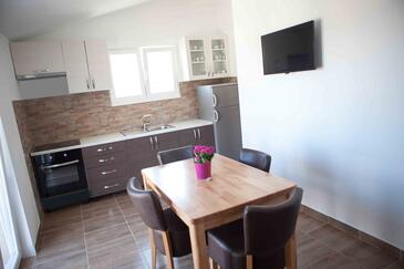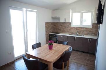 Appartamento può accogliere 6 ospiti. I letti sono disposti nelle camere da letto che sono 2, su 58m2. Gli ospiti hanno a disposizione il proprio terrazzo per godere nelle calde serate estive. Dall'appartamento si gode di una vista sul mare. Si può preparare il cibo utilizzando il barbecue comune.