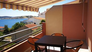 Appartamento può accogliere 6 ospiti. I letti sono disposti nelle camere da letto che sono 2, su 58m2. Gli ospiti hanno a disposizione il proprio terrazzo per godere nelle calde serate estive. Dall'appartamento si gode di una vista sul mare. Si può preparare il cibo utilizzando il barbecue comune.