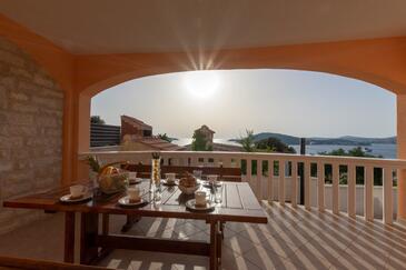 Casa può accogliere 8 ospiti. I letti sono disposti nelle camere da letto che sono 4, su 86m2. Gli ospiti hanno a disposizione il proprio terrazzo per godere nelle calde serate estive. Dalla casa si gode di una vista sul mare. Per il piacere totale e il relax c'è il barbecue privato solo per gli ospiti di quest'alloggio. Durante il soggiorno gli ospiti si possono rilassare nella piscina privata. Arrivati nell'unità d'alloggio i clienti devono pagare un deposito (il prezzo è indicato sul sito).