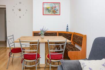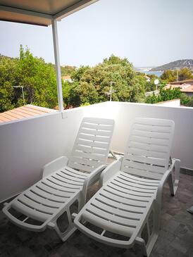 Appartamento può accogliere 5 ospiti. I letti sono disposti nelle camere da letto che sono 2, e nella camera di soggiorno, su 50m2. Gli ospiti hanno a disposizione il proprio terrazzo per godere nelle calde serate estive. Dall'appartamento si gode di una vista sul mare. Si può preparare il cibo utilizzando il barbecue comune.