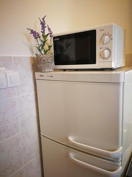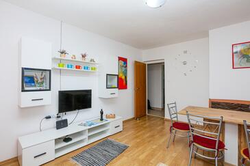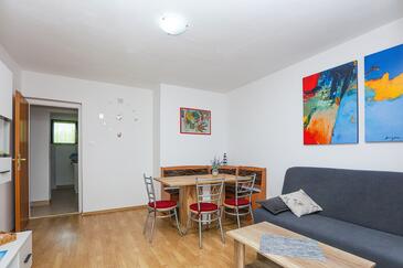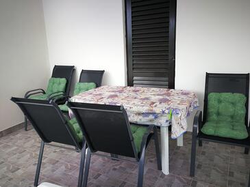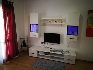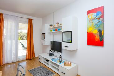 Appartamento può accogliere 5 ospiti. I letti sono disposti nelle camere da letto che sono 2, e nella camera di soggiorno, su 50m2. Gli ospiti hanno a disposizione il proprio terrazzo per godere nelle calde serate estive. Dall'appartamento si gode di una vista sul mare. Si può preparare il cibo utilizzando il barbecue comune.