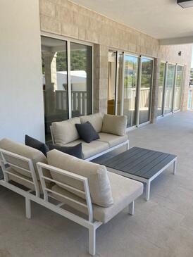 Casa può accogliere 10 ospiti. I letti sono disposti nelle camere da letto che sono 5, su 189m2. Gli ospiti hanno a disposizione il proprio terrazzo per godere nelle calde serate estive. Dalla casa si gode di una vista sul mare.