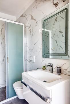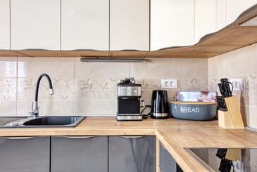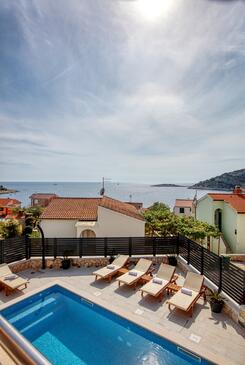 Casa può accogliere 10 ospiti. I letti sono disposti nelle camere da letto che sono 4, e nella camera di soggiorno, su 122m2. Gli ospiti hanno a disposizione il proprio terrazzo per godere nelle calde serate estive. Dalla casa si gode di una vista sul mare. Per il piacere totale e il relax c'è il barbecue privato solo per gli ospiti di quest'alloggio. Durante il soggiorno gli ospiti si possono rilassare nella piscina privata.