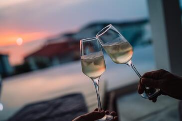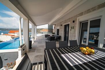 Casa può accogliere 6 ospiti. I letti sono disposti nelle camere da letto che sono 3, su 94m2. Gli ospiti hanno a disposizione il proprio terrazzo per godere nelle calde serate estive. Dalla casa si gode di una vista sul mare. Per il piacere totale e il relax c'è il barbecue privato solo per gli ospiti di quest'alloggio. Durante il soggiorno gli ospiti si possono rilassare nella piscina privata. Nell'unità di alloggio si possono portare gli animali domestici senza alcun pagamento supplementare.