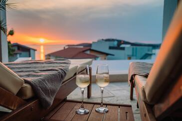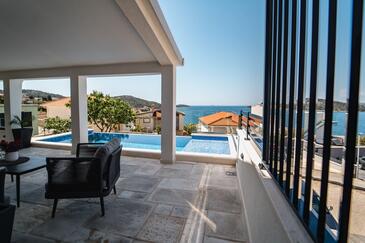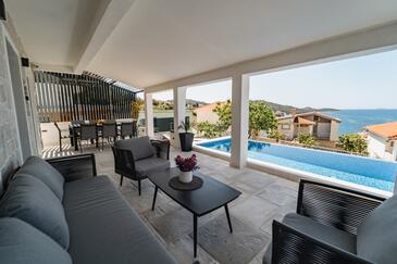 Casa può accogliere 6 ospiti. I letti sono disposti nelle camere da letto che sono 3, su 94m2. Gli ospiti hanno a disposizione il proprio terrazzo per godere nelle calde serate estive. Dalla casa si gode di una vista sul mare. Per il piacere totale e il relax c'è il barbecue privato solo per gli ospiti di quest'alloggio. Durante il soggiorno gli ospiti si possono rilassare nella piscina privata. Nell'unità di alloggio si possono portare gli animali domestici senza alcun pagamento supplementare.