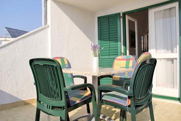 Appartamento può accogliere 5 ospiti. I letti sono disposti nelle camere da letto che sono 2, e nella camera di soggiorno, su 61m2. Gli ospiti hanno a disposizione il proprio terrazzo per godere nelle calde serate estive. Dall'appartamento si gode di una vista sul mare. L'unità d'alloggio ha delle stanze separate dal resto dell'unità.