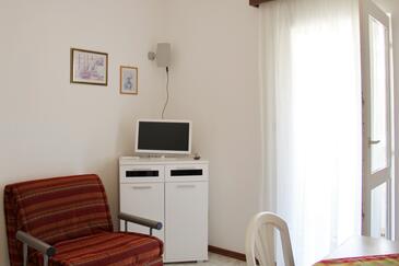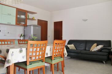 Appartamento può accogliere 5 ospiti. I letti sono disposti nelle camere da letto che sono 2, e nella camera di soggiorno, su 61m2. Gli ospiti hanno a disposizione il proprio terrazzo per godere nelle calde serate estive. Dall'appartamento si gode di una vista sul mare. Le stanze dell'unità d'alloggio non sono connesse in un insieme. L'unità d'alloggio ha delle stanze separate dal resto dell'unità.